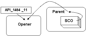 Historically there have been some LMS’s that have deviated slightly from this pattern by launching the SCO in a window, within a frameset, whose opener contains the API Adapter. That is, the API Adapter resides in the base LMS window, this window opens a new popup containing a frameset, this frameset may contain some navigational controls, and also the SCO. Got it? See the diagram below for clarification.